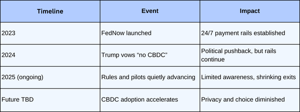 Get the FREE 2025 Guide: Digital Dollar Escape Plan — a step-by-step blueprint to protect cash, privacy, and savings while you still have a choice.