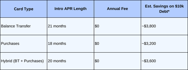 For a limited time, select 0% APR cards are offering up to 21 months interest-free.